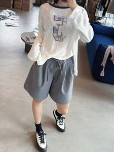 017数学5拼色亚麻长袖T恤宽松防晒衫上衣女潮流风
