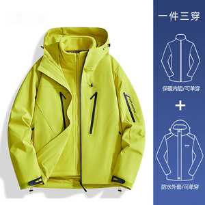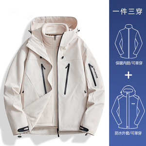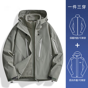 啄木鸟硬壳冲锋衣女款2025新款春秋户外防风超好看三合一登山外套