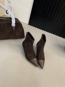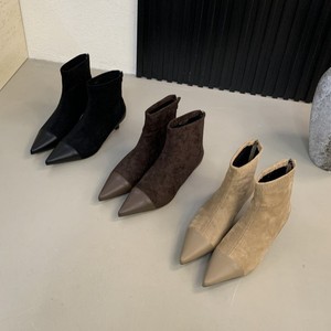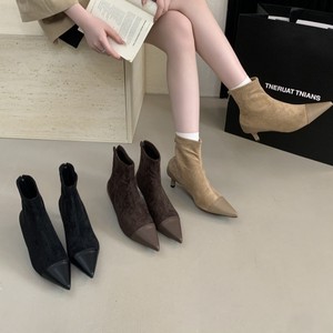 2025秋冬新款尖头绒面拼接细跟中跟短靴高跟弹力瘦瘦靴袜子靴女鞋