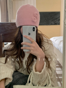 YAOLI製~韩系手工立体花朵针织帽子女秋2025秋冬保暖毛线套头帽