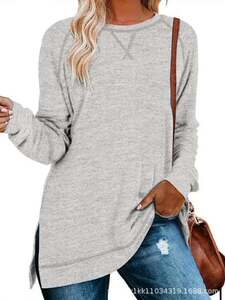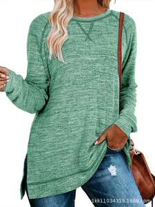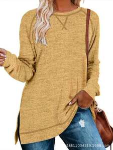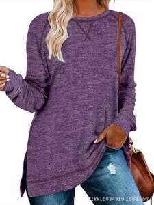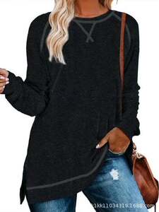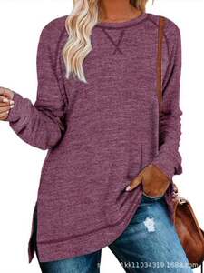 2025亚马逊跨境秋季新款拼色交叉宽松长袖休闲T恤开叉女上衣