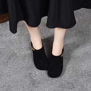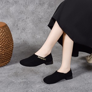 春秋深口舒适方头金属链条低跟一脚蹬懒人休闲百搭粗跟深口女单鞋