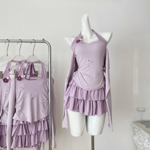 Q3884早秋纯欲风小众两件套连衣裙秋季新款 小个子少女蛋糕短裙潮