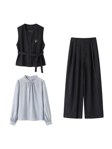 2025秋新款女装衬衫马甲套装职场阔腿裤两件套休闲裤T0330902009