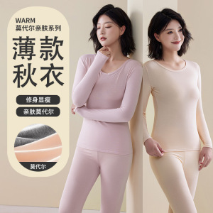 莫代尔秋衣秋裤套装女秋冬薄款保暖内衣打底大码200斤线衣线裤秋