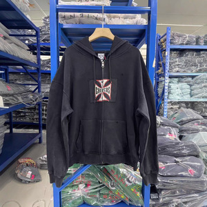 West Coats重磅vintage铁十字Remake设计拉链做旧连帽卫衣帽衫男