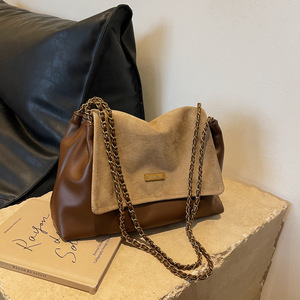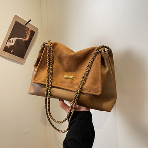 复古磨砂包包女大容量2025新款秋冬休闲链条单肩包上班通勤托特包