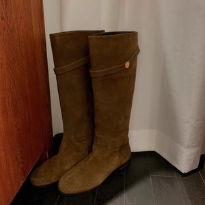 牛皮版~真皮平底胖mm骑士靴女秋冬季小个子大筒围粗腿长筒靴子