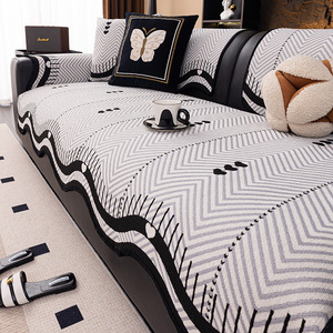 雪尼尔加厚异形沙发垫2025新款一片式固定防滑直排皮沙发套罩跨境