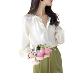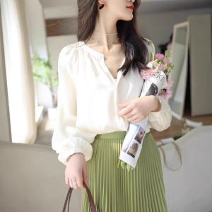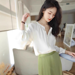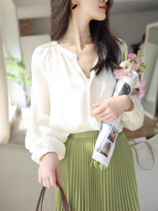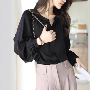 黑色雪纺衬衫女长袖设计感小众秋季宽松女装内搭打底上衣衬衣