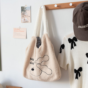 2025原创秋冬新款毛毛背心包大容量刺绣学生上课可爱小众布袋