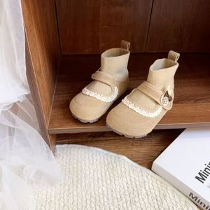 女童花边单靴2025秋冬新款小女孩软底防滑玛丽珍公主鞋宝宝袜靴潮