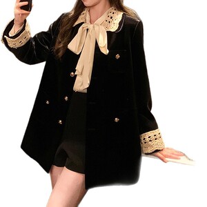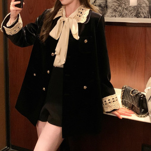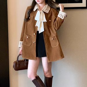 MIU系复古翻领中长款麂皮/丝绒外套工装风衣女美拉德穿搭上衣秋季