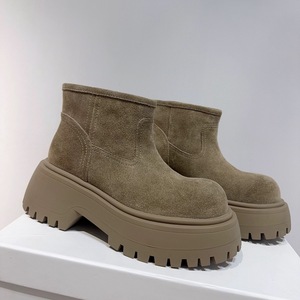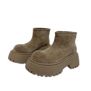 欧洲站2025秋季新款潮款时尚百搭短靴复古松糕厚底增高显瘦真皮靴