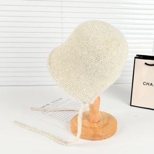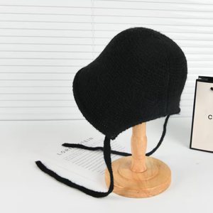 2025秋冬款绑带针织渔夫帽子女保暖韩版后开口时尚针织显脸小盆帽