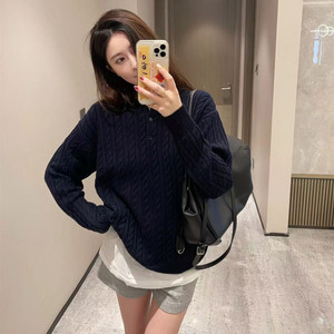 正确版本原标MIU缪家小红书网红款羊绒POLO衫套头麻花毛衣男女