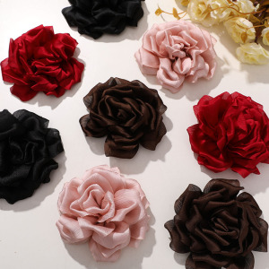 秋冬复古气质烧边网纱山茶花diy鲨鱼夹发圈头饰胸花衣服花朵辅料