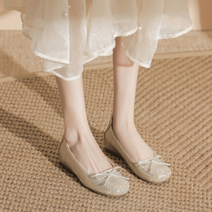 小个子~内增高5CM法式蝴蝶结浅口单鞋女2025新款甜美配裙子平底鞋