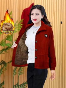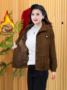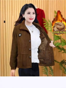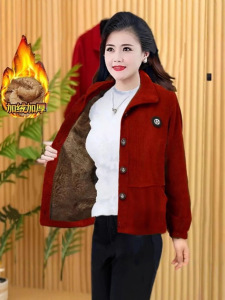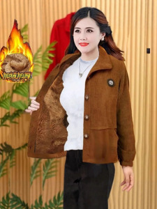 高档加绒保暖外套新款灯芯绒外套女秋冬季防寒中老年妈妈加厚女装