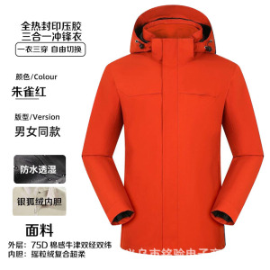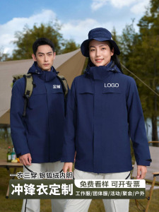 冲锋衣工作服印logo三合一可拆卸户外团建防水保暖工装外套印字