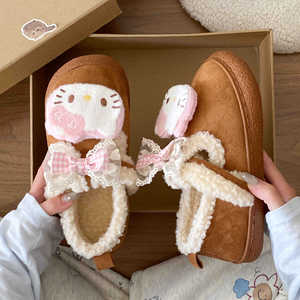 冬季可爱凯蒂猫棉拖鞋女外穿包跟厚底防滑室内家居加绒保暖棉鞋