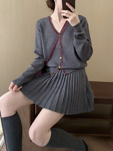 韩系气质休闲时尚套装2025春秋新款学院风显瘦针织衫百褶裙两件套