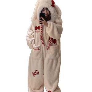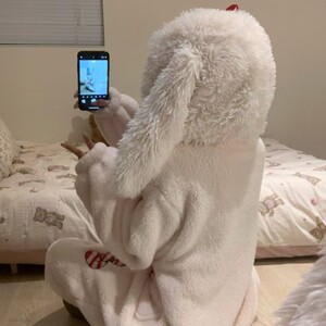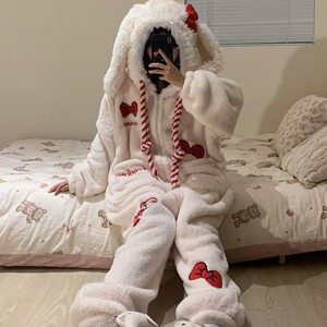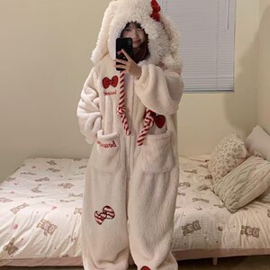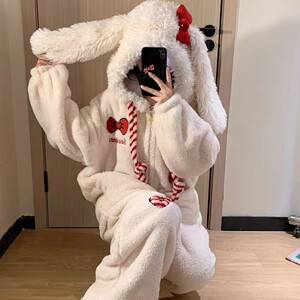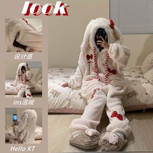 【兔耳朵】可爱少女珊瑚绒连体睡衣女冬季款加绒加厚家居服一体式