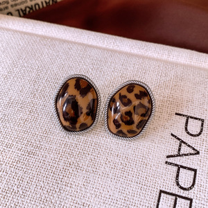 银针圆形不规则亚克力豹纹耳环时尚气质高级感耳钉小众百搭耳饰女