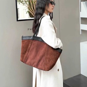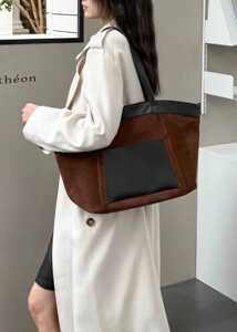 小众设计慵懒通勤托特包女新款磨砂麂皮拼皮斜挎包双面多用单肩包