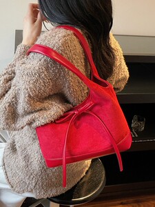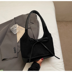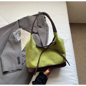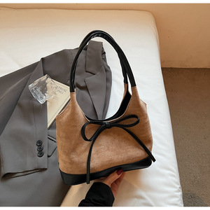 蝴蝶结麂皮绒拼接托特包百搭单肩通勤包高级感复古小众设计手拎包