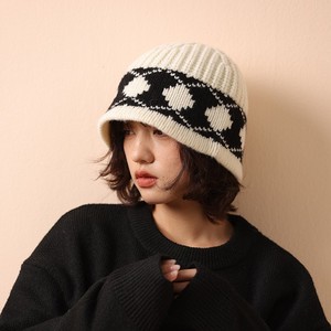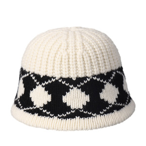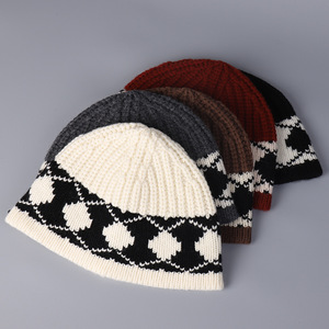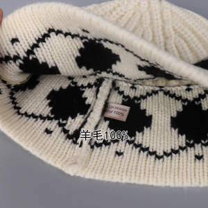 100%羊毛厚实水桶渔夫帽女冬季保暖针织帽护耳显脸小档脸潮帽