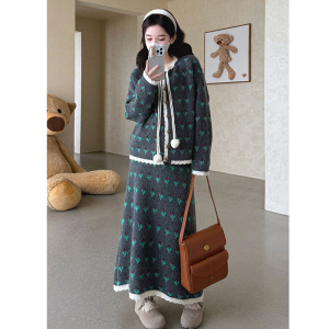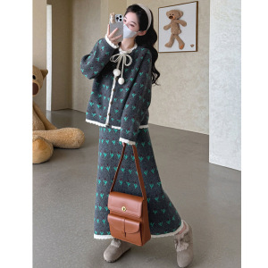 2025秋冬季针织套装女韩版宽松花朵毛衣开衫高级感半身裙套两件套