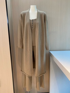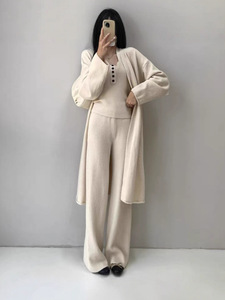 外贸跨境针织套装女秋冬长款开衫+挂脖吊带内搭+宽松阔腿裤三件套