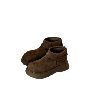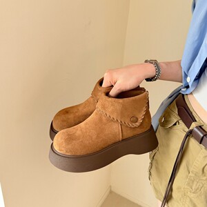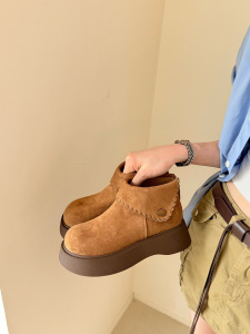 2025年秋季新款真皮复古厚底马丁靴女英伦风百搭短筒勃肯烟筒靴潮