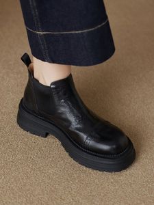 2025年巨好穿复古圆头切尔西短靴女英伦风及踝靴秋裸靴厚底马丁靴