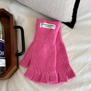 新款纯色学生毛线半指手套女冬季防寒保暖加长露指头打字办公骑车