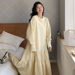 荷叶边长袖长款卫衣连衣裙胖特大码300斤春秋宽松遮肚显瘦字裙