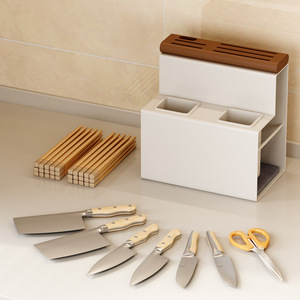【皓月白】刀架筷筒一体-台面/壁挂两用