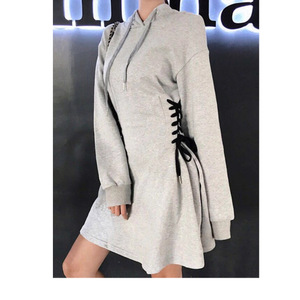2025年秋季新款韩版大码女装短款连衣裙连帽抽绳卫衣短裙运动风