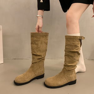 不过膝长筒英伦骑士靴复古西部牛仔长靴韩系长靴显瘦褶皱堆堆靴女