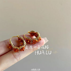 HUALU-金秋玫瑰~精致浪漫氛围感法式复古轻奢中古花朵耳环耳圈女
