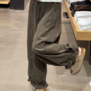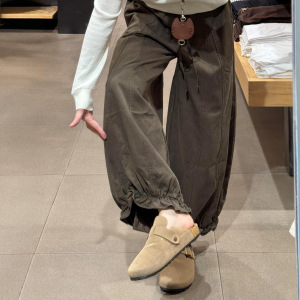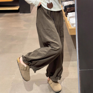 日系咖色木耳花苞休闲裤女秋季宽松显瘦减龄小个子垂感阔腿气球裤