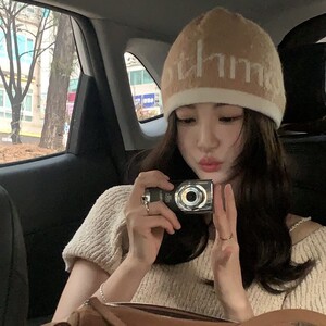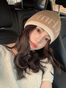 韩国字母针织毛线帽子女秋冬保暖防寒户外登山套头帽护耳包头冷帽
