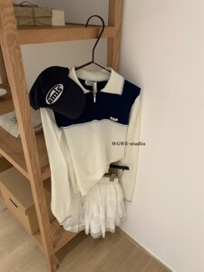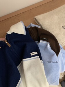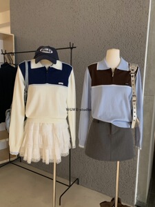 WGWE7044#广州十三行女装2025秋装新款显瘦翻领撞色拼接拉链上衣