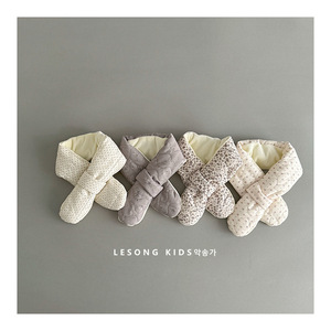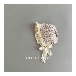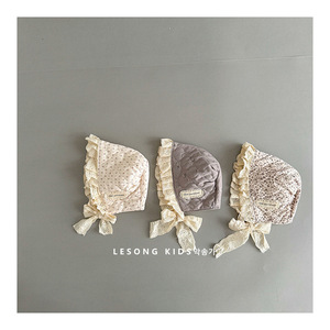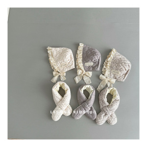 儿童韩系碎花羽绒帽子夹棉婴幼儿护耳宫廷帽宝宝秋冬帽子围巾套装