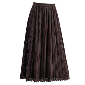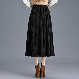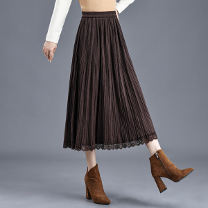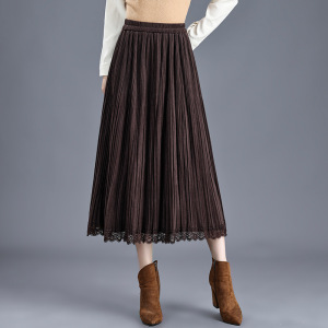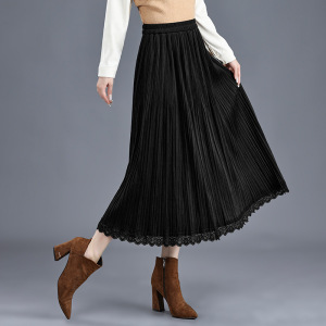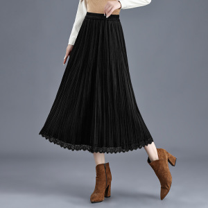 温柔风花边拼接半身裙秋冬2025新款胖高腰显瘦大摆中长款百褶裙女