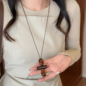 复古树脂木头椭圆吊坠项链时尚百搭高级感锁骨链小众气质个性饰品