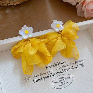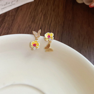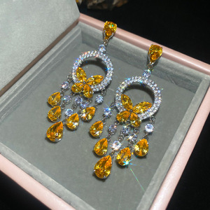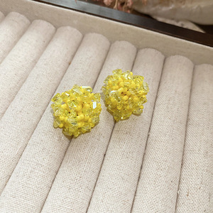 银针猫眼石黄色镶钻圆圈耳环轻奢高级感耳钉小众设计精致时尚耳饰