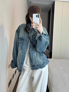 美式复古水洗做旧牛仔外套女2025秋季新爆款宽松休闲韩版夹克上衣