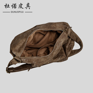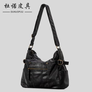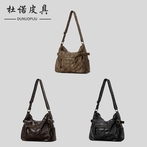 美式斜挎包荒野肌理机车包做旧磨边托特包潮酷懒人包女单肩包